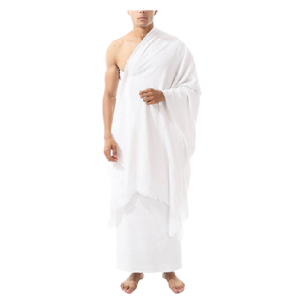 إحرام رجالي قطن صافي 100% من آدمز كيڤ يحتوي على قطعتين (إزار , روب) يتميز بتصميم راقي ومريح لتأدية مناسك الحج والعمرة