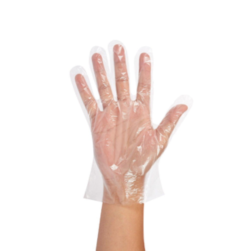 قفاز بلاستيكي شفاف للاستخدام مرة واحدة، مخصص للأكل والحفاظ على النظافة.